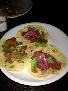 Jen's friend, Cailtin, (check out her amazing food blog here) recommended an awesome taqueria called Empellon. Since our reservations weren't until 7:30, we decided to pop into one of the many cool bars we passed on our way to the restaurant. We settled on One If By Land, Two If By Sea. After chatting with the bartender, I discovered he was a fellow Penn Stater (we truly are everywhere) and was given his personal concoction on the house. You have to love that Nittany Lion Pride. Finally, it was time to eat! We headed over and entered the bustling and tight waiting area of Empellon. This place was packed and popular. Everywhere we went we seemed to be making friends and Empellon was no exception. While waiting for our table where 'two minutes' turned into twenty, three gentlemen going to dinner with their wives boasted how wonderful the food was and how they've been there a dozen times. With the food selections in NYC, I knew being such a repeat customer was a good sign.